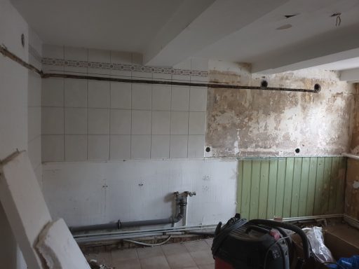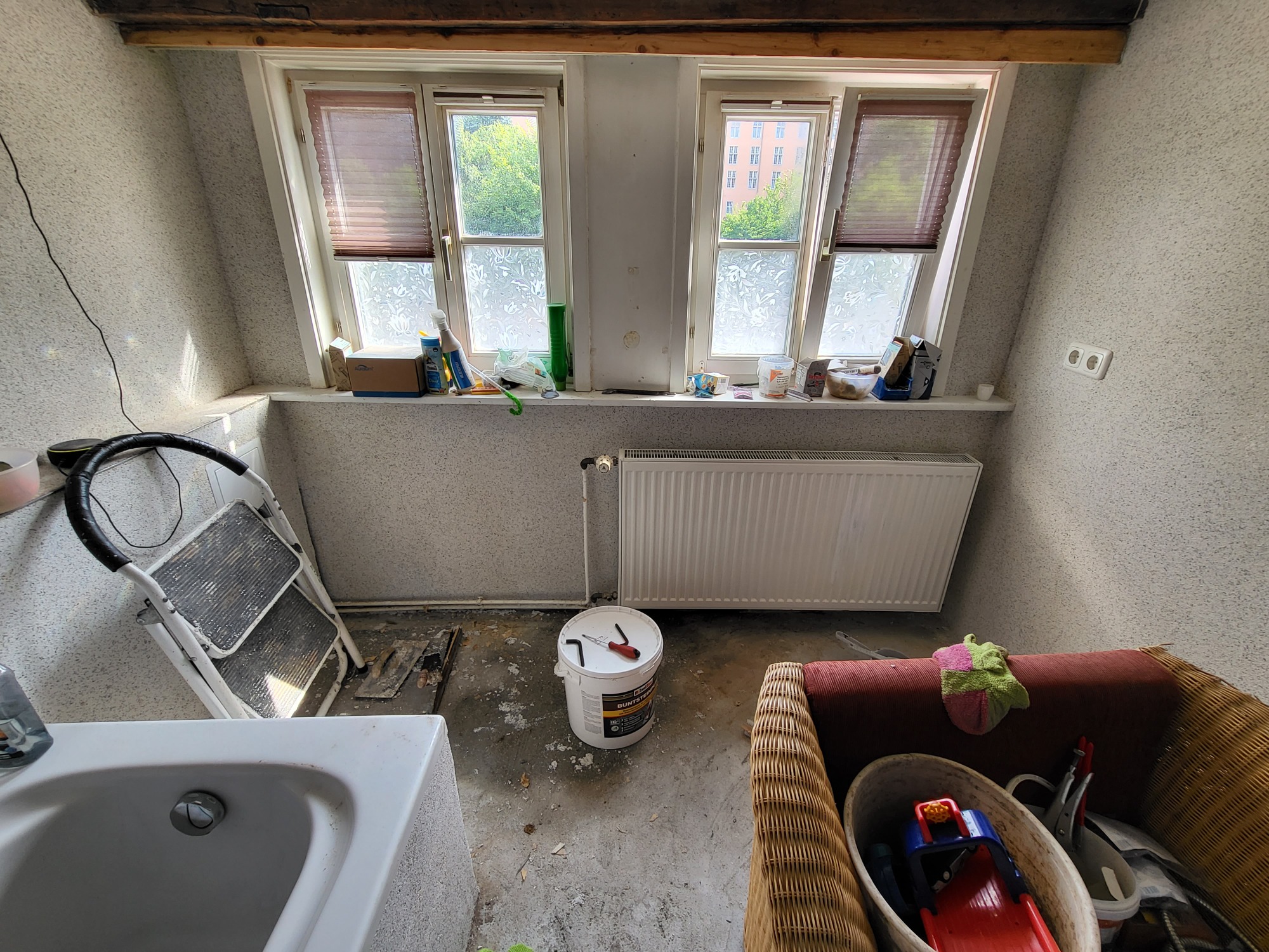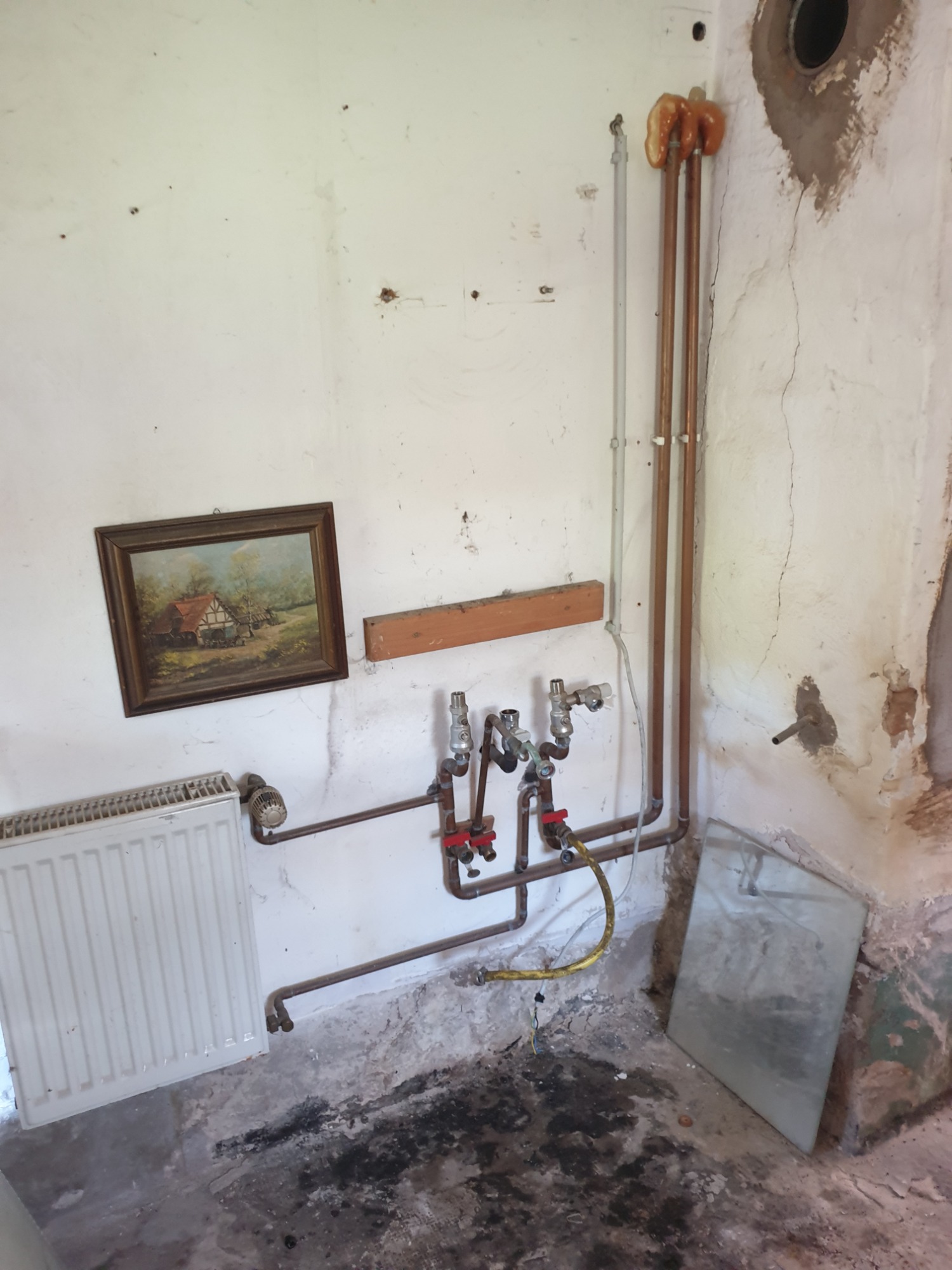 Strom, Wasser, neue Heizleitungen, zentrale Heizung im Keller.